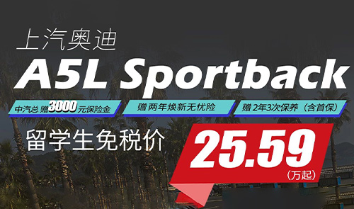 仅限今日丨上汽奥迪A5L 享保险金+多重权益 留学生免税车