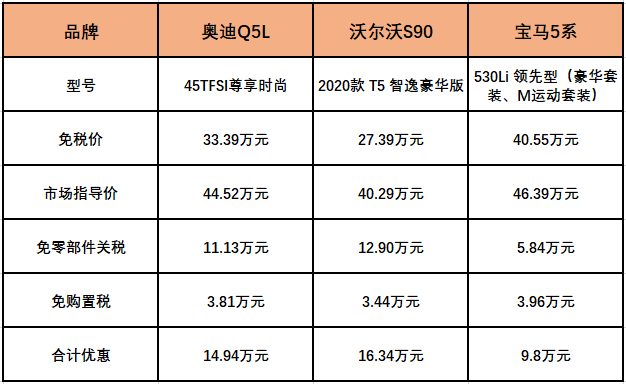 购买免税车可享受减免进口零部件关税、免购置税的优惠。以时下热销车型为例: