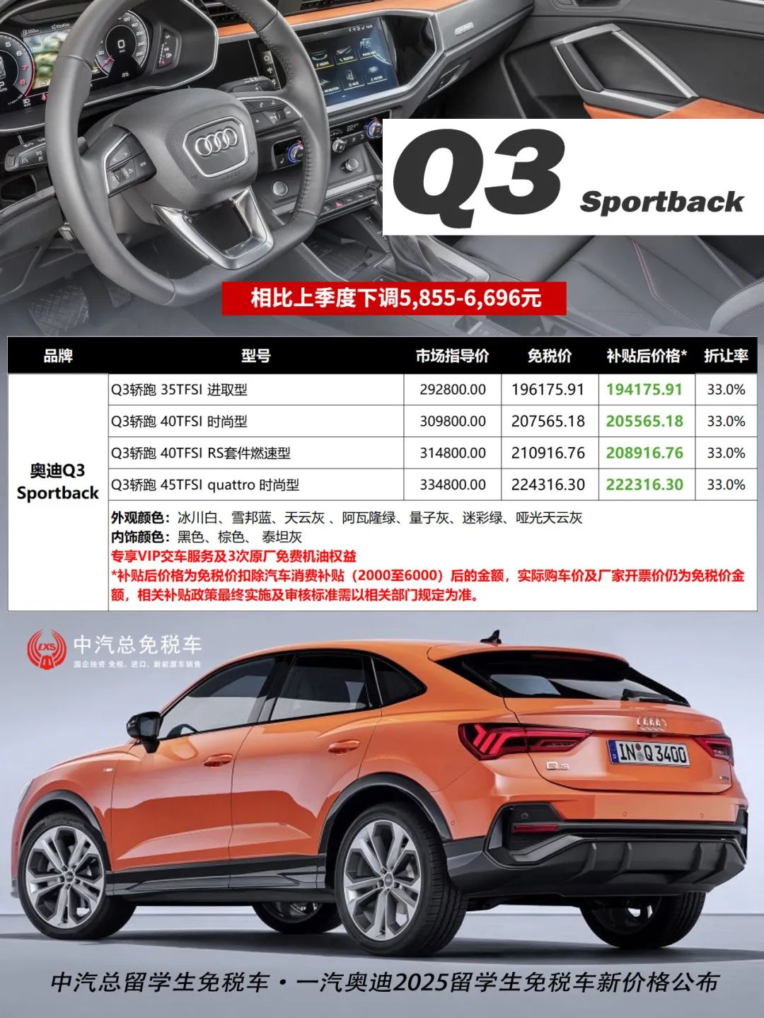 Q3 Sportback:免税价下调5,855-6,696元